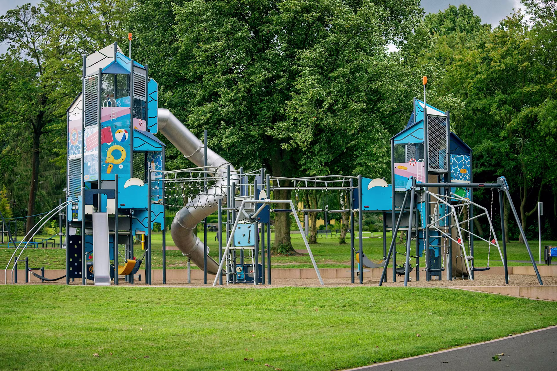 Entstanden ist eine kreative Spielfläche, die trotz kompakter Grösse viel Platz für gemeinsames Spielen schafft. Dank der offenen Gestaltung können Eltern entspannt Konzerte geniessen und ihre Kinder gleichzeitig im Blick behalten. Die Anlage kommt bei Familien sehr gut an, und die Stadt schätzt die hochwertige Ausstattung und den unkomplizierten Unterhalt.