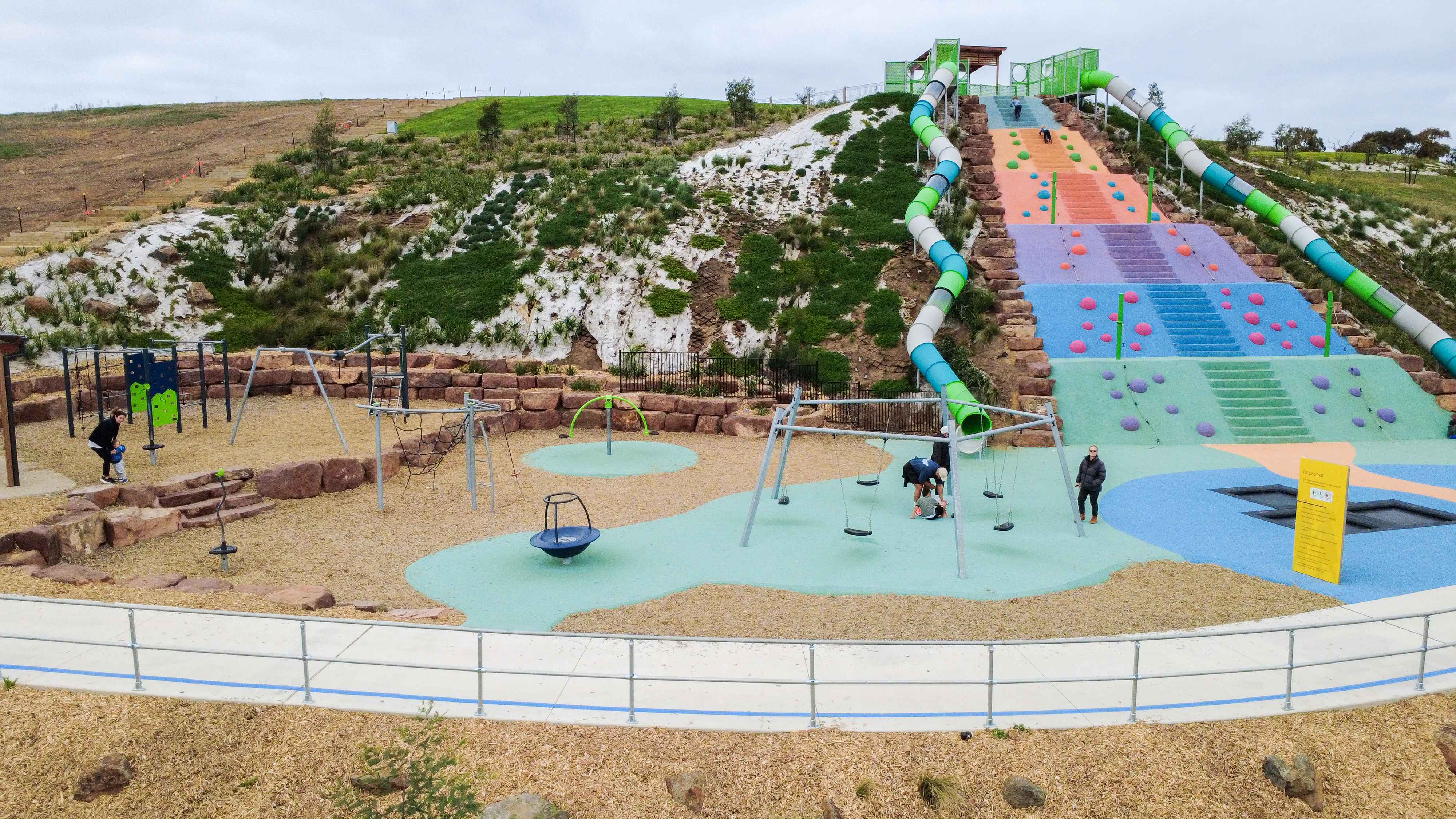 The visitors of Harzdrenalin, one of the larger adventure parks in Germany, are pushed to their limits. Located in the low mountain range, the Harz, daredevil teenagers and adults fly down the valley on the longest double zipline in Europe, plunge into the depths with a giant swing, or abseil down the 43-meter-deep dam wall. And the little ones? They can practice for their day on the big adventure at the adjacent playground. KOMPAN's wide range of products made it possible to meet the special wishes of the customer to blend in, whilst recreating the inspiring adult exploits in miniature. Elements such as the ziplines, whirling swing or the climbing block let children experience the same challenges and thrills as their parents. Adrenaline for the whole family is guaranteed.