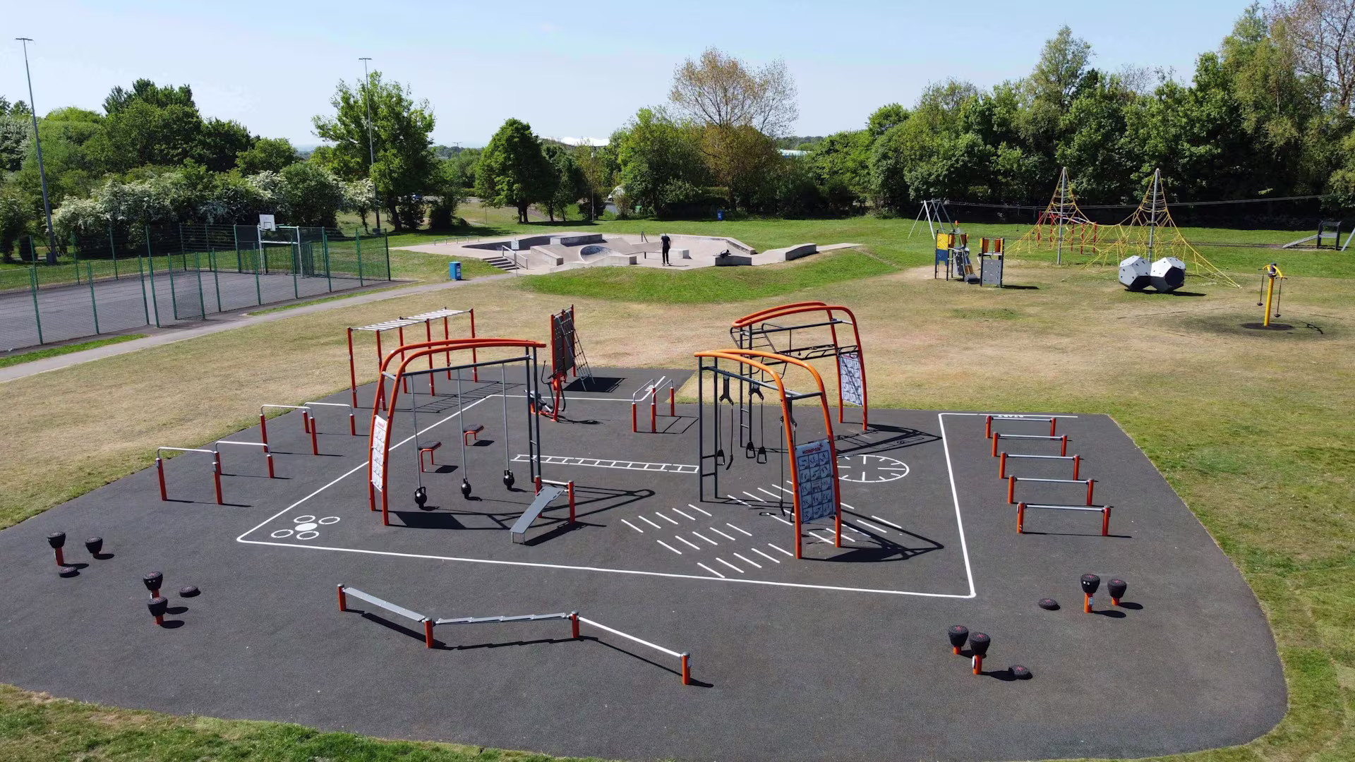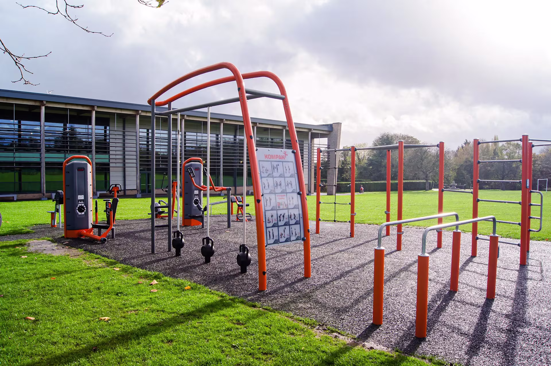 GroundPlay features a mix of KOMPAN’s durable outdoor fitness equipment, including adjustable strength machines, cardio bikes and elliptical cross-trainers that easily connect to the (App Store or Google), cross training systems, and street workout stations ideal for putting athletes’ fitness to the test.