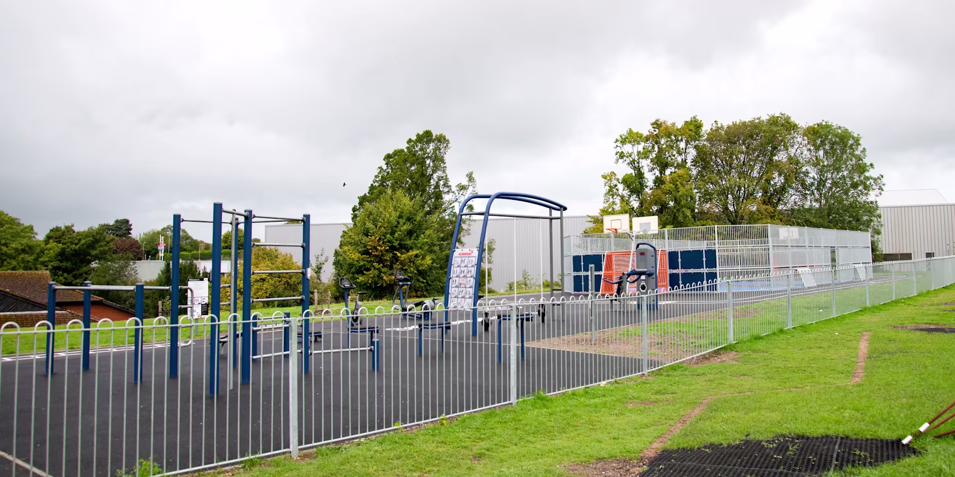The site also includes an open space for high-intensity training, a track for running and walking (9 laps equal approximately 1.6 kilometres), and a multi-use sports court for basketball, tennis, and more.