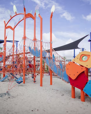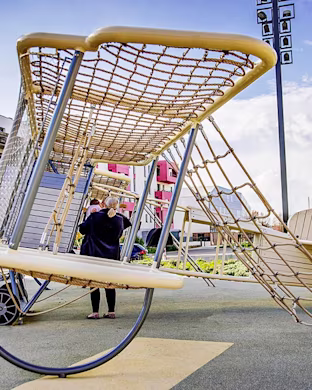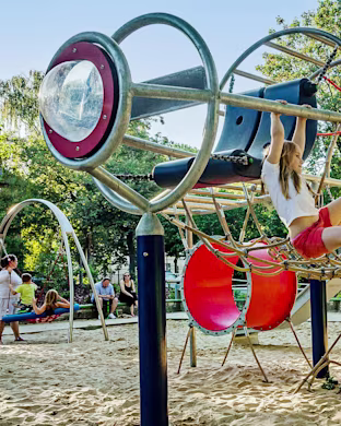 This giant bespoke skywalk play area serves as a standout piece of Brentwood's new leisure hub. Collaborating with the innovative minds at KOMPAN, Brentwood Council aimed to create a playground that delivered children an experience worth paying for. This bespoke play area is designed to help children cultivate a multitude of key skills, including: