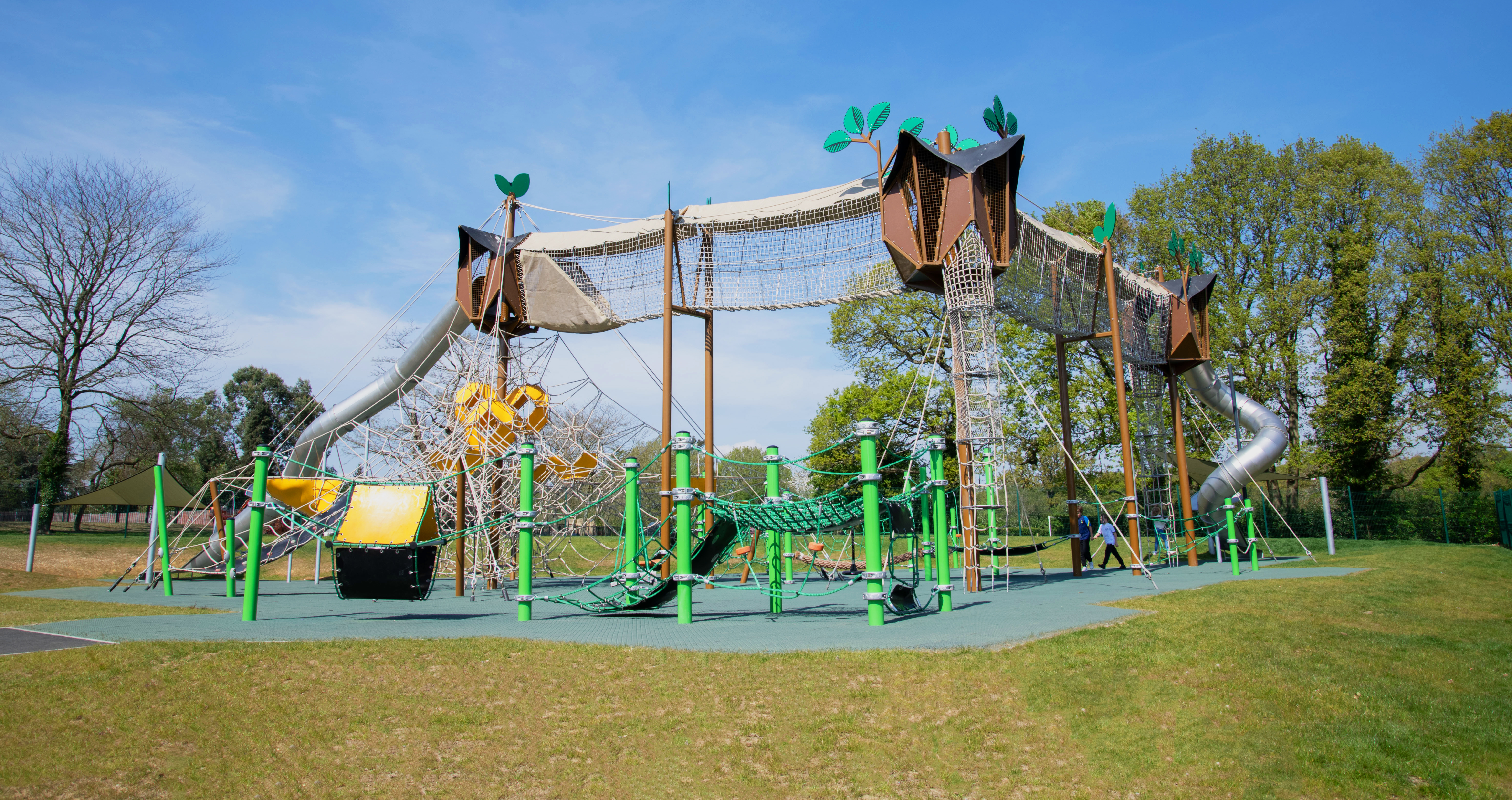 Joshuas' happiness is obvious. Looking at the faces of the children playing, there is no doubt, they love the new playground at Riverside Green Park. And with good reason - the playground is loaded with one of a kind play activities for children of all ages, surrounded by a vibrant design that WOWs both children and adults. Children love a good thrill, and an item like slides can really deliver. This playground holds numerous slides at different levels that are thrilling for both small children and teenagers. The Supernova will give children a good spin with friends, improving their balance and spatial awareness. The Moments Pirate ship calls out for hours of dramatic play, where children unfold their imagination by sailing the seven seas or fighting pirates. Swings are the evergreen of playgrounds - children love them and swinging helps them develop coordination and balance. Finally, children will meet an infinite number of possible paths of Corocord rope nets leading up to the pink Skywalk. Climbing their way to the top will challenge their cross-coordination skills and strength. At the top, they will encounter Sky Towers with a free-hanging and see-thru rope bridge leading from one Sky Tower to the other.