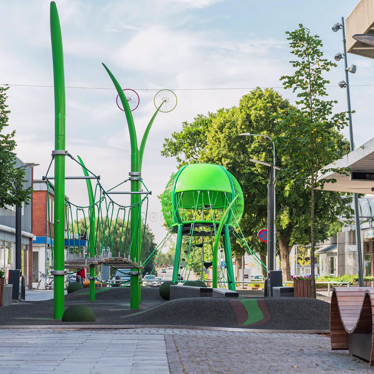 KOMPAN offers tailored solutions for retailers to help you create the perfect playground. We'll work with you to develop a site that fits with your surroundings and aesthetic, and which will help children enjoy their stay even more.