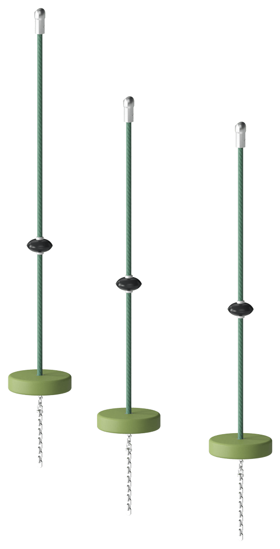 Ropes of UV-stabilized PES rope strands with inner steel cable reinforcement. The EcoYarn™ polyester yarn is made of +95% post-consumer recycled waste in the yarn for all colors and is inductively melted onto each strand to obtain excellent wear and tear resistance.