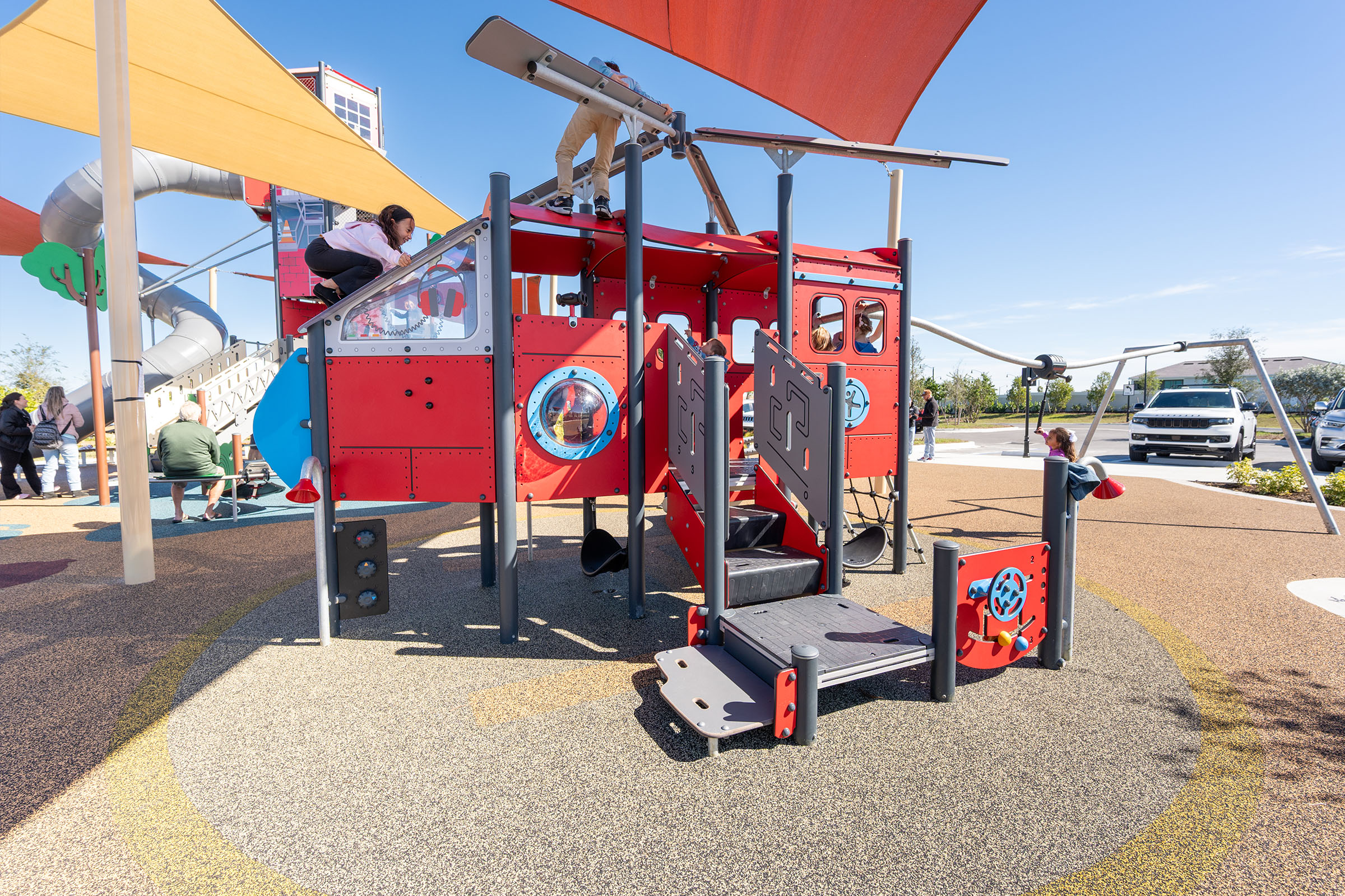 The richness of KOMPAN's product range makes it possible to choose playgrounds according to the theme that the designers decided.