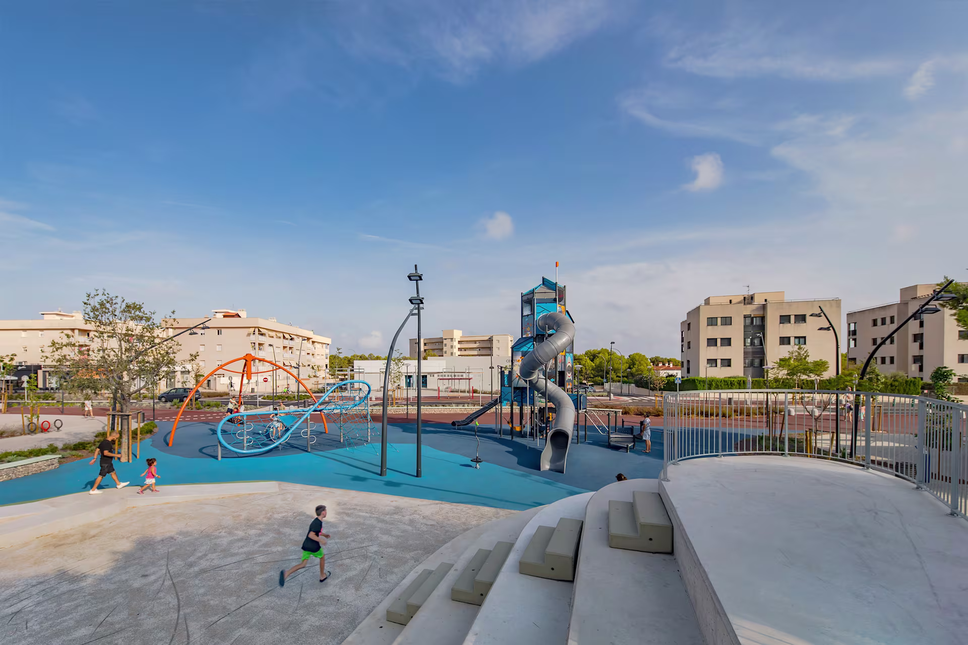 Los parques infantiles ofrecen oportunidades para la interacción social y el desarrollo del crecimiento. El gran sistema de juego Elements, con su impresionante altura, atrae a niños de toda la comunidad. Con una gran variedad de juegos de escalada, deslizamiento y balanceo, los niños entrenan su coordinación corporal y su equilibrio. Los seis BLOQX ofrecen emocionantes experiencias de escalada, al tiempo que proporcionan espacio para la socialización y el intercambio. Para los niños pequeños, la Jirafa del Bosque es un lugar atractivo para entrenar habilidades motrices fundamentales como la propiocepción. Sus numerosas entradas y su diseño transparente lo hacen ideal para los niños pequeños, evocando su comprensión lógica del espacio, y a los cuidadores y padres les permite formar parte de las actividades lúdicas.
