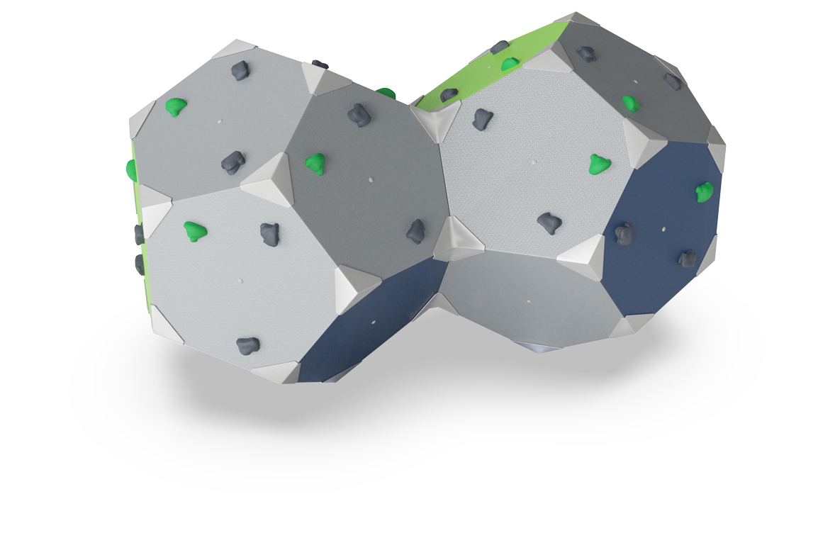 Las presas de escalada son un diseño personalizado de KOMPAN, basado en presas de escalada diseñadas profesionalmente para un valor de juego óptimo. El material base es poliéster. Hay dos colores de agarres de escalada (verde y negro) y tres en cada panel. Son rotación asegurada por un pasador de acero.