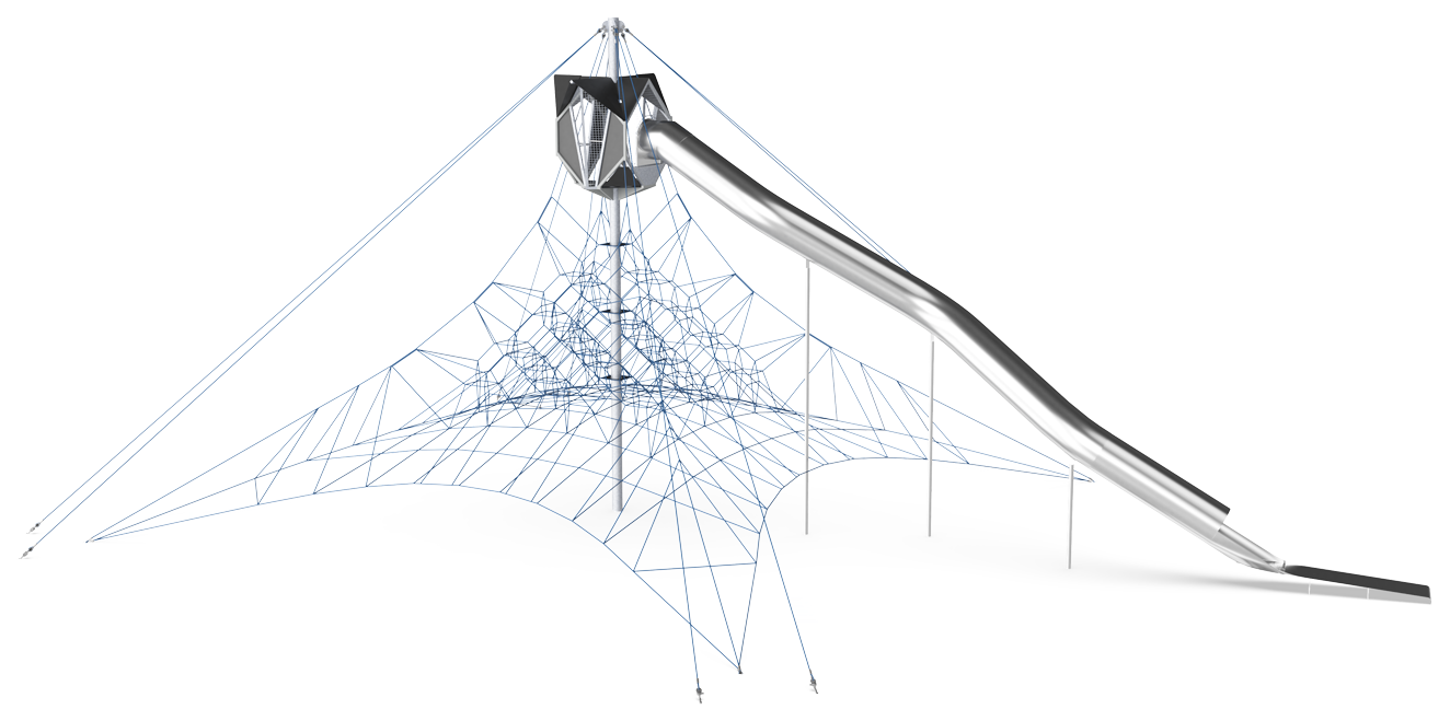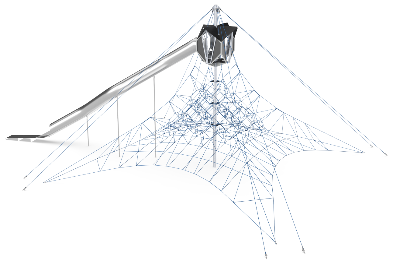 La red Gigante traerá el factor WOW a cualquier área de juego. Está lleno de desafíos de escalada combinados con emoción y recompensa desde todos los ángulos. La red cuidadosamente diseñada está pensada para invitar a los escaladores más inexpertos, así como a los escaladores más experimentados, a desarrollar la agilidad, el equilibrio y la fuerza, el ABC de las habilidades motoras, así como a entrenar la conciencia espacial y la propiocepción. Estas son habilidades motoras que forman la base de habilidades esenciales para la vida, como navegar el tráfico de manera segura. Las cápsulas se colocan para funcionar como puntos de encuentro para grupos pequeños que ofrecen un espacio de descanso para disfrutar de la vista antes del largo y gratificante deslizamiento hasta el nivel del suelo para comenzar la aventura nuevamente. La red Gigante es emocionante de arriba a abajo y desde todos los ángulos, tanto para los niños como para los padres.