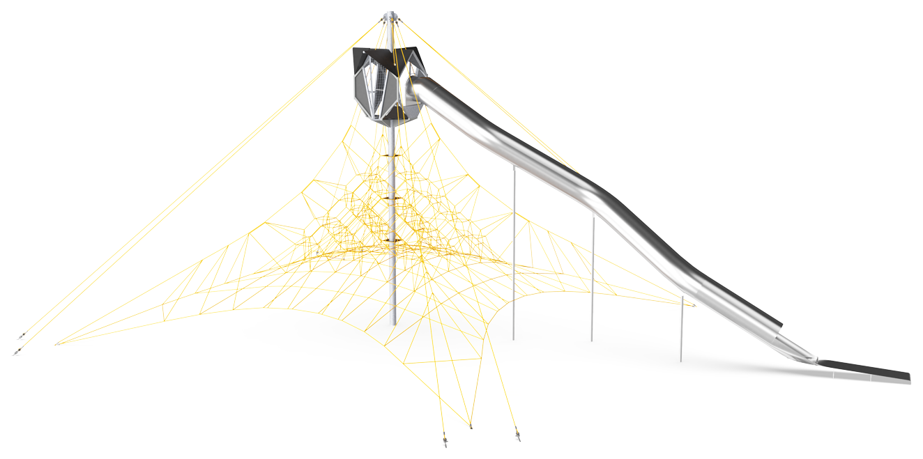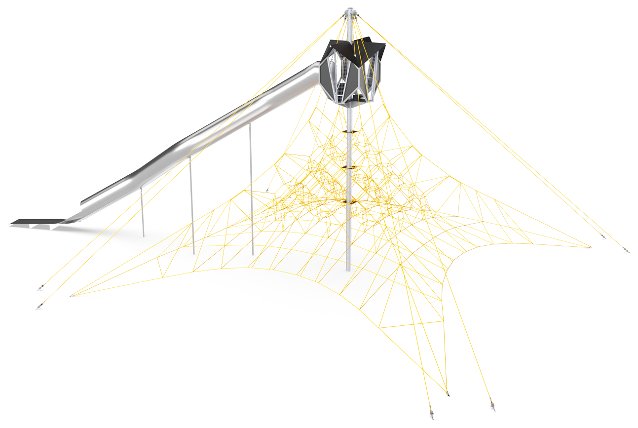 La red Gigante traerá el factor WOW a cualquier área de juego. Está lleno de desafíos de escalada combinados con emoción y recompensa desde todos los ángulos. La red cuidadosamente diseñada está pensada para invitar a los escaladores más inexpertos, así como a los escaladores más experimentados, a desarrollar la agilidad, el equilibrio y la fuerza, el ABC de las habilidades motoras, así como a entrenar la conciencia espacial y la propiocepción. Estas son habilidades motoras que forman la base de habilidades esenciales para la vida, como navegar el tráfico de manera segura. Las cápsulas se colocan para funcionar como puntos de encuentro para grupos pequeños que ofrecen un espacio de descanso para disfrutar de la vista antes del largo y gratificante deslizamiento hasta el nivel del suelo para comenzar la aventura nuevamente. La red Gigante es emocionante de arriba a abajo y desde todos los ángulos, tanto para los niños como para los padres.