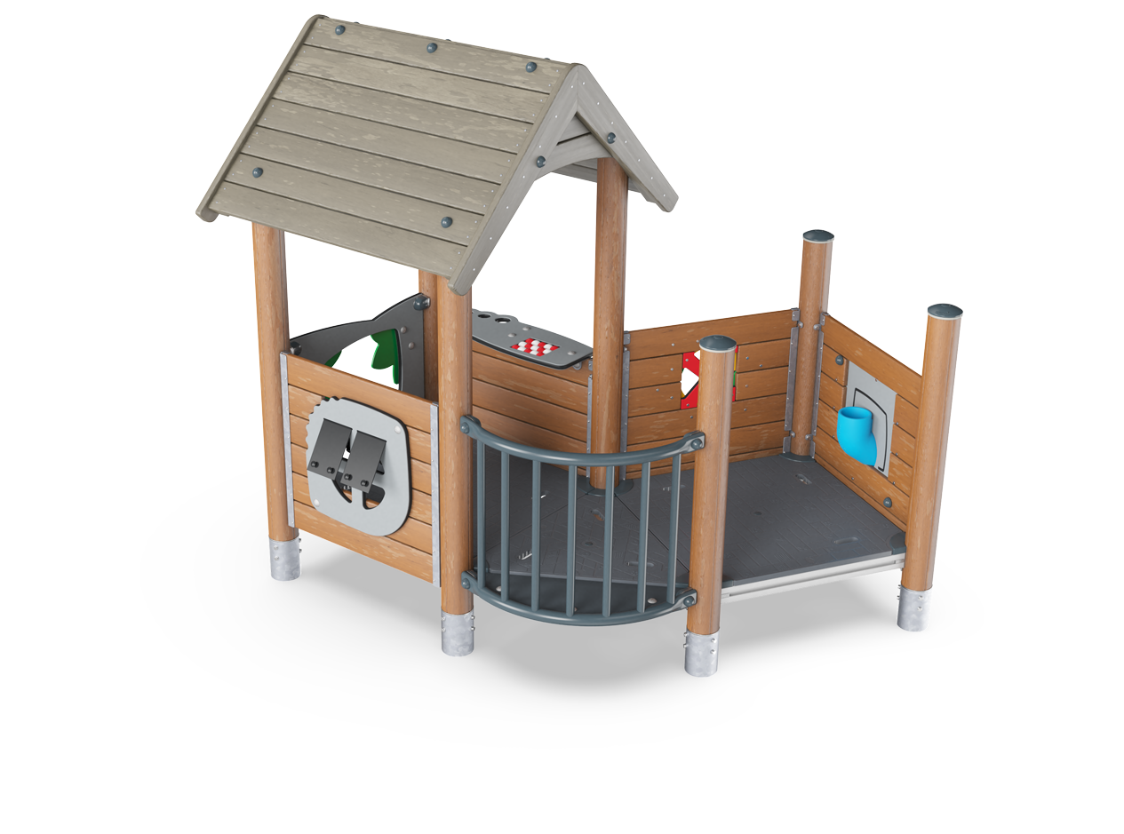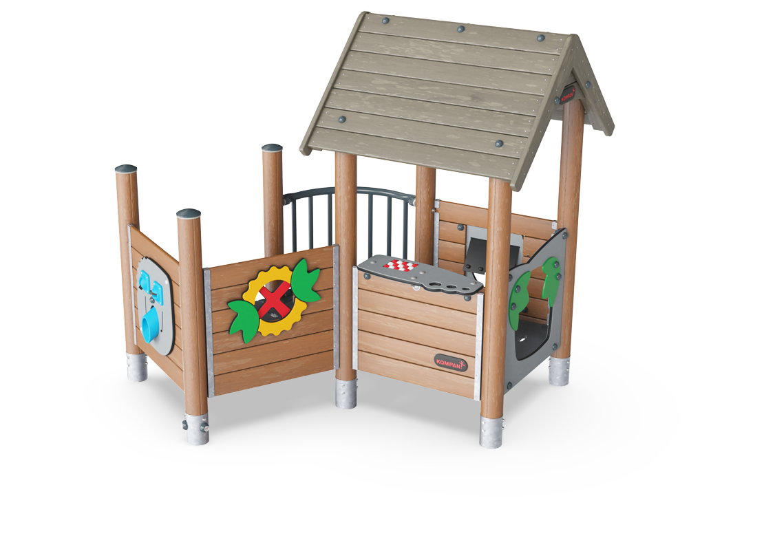 Este producto, Casita de Juego con Balcón (PCM002321), es suministrado por KOMPAN España.