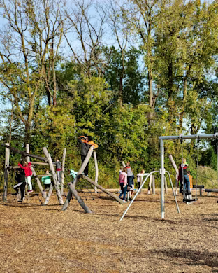 Integrar una zona de juegos naturales en los patios de los colegios es perfecto para fomentar el descubrimiento y el contacto con los materiales naturales. Es especialmente una forma estupenda de llevar la naturaleza a las escuelas situadas en entornos urbanos. Ahora puedes combinar estructuras multijuego de madera con senderos de escalada para desarrollar la velocidad y el equilibrio, al tiempo que fomenta la interacción social y las experiencias de grupo que fomentan la cooperación y hacen crecer las amistades.