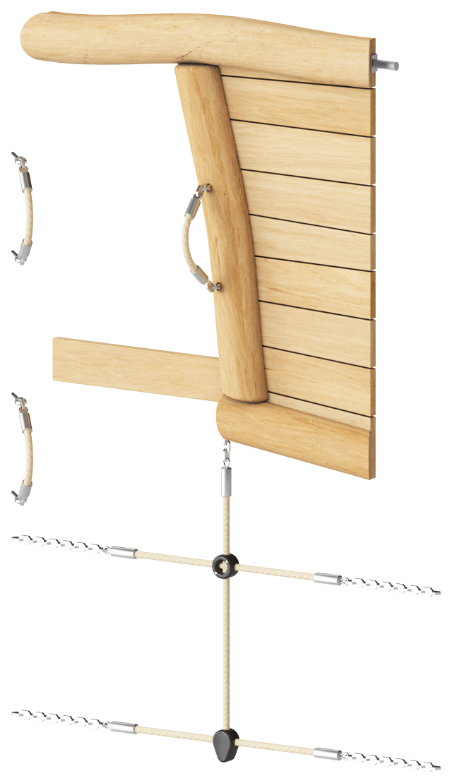 Horas y horas de juego en el cobertizo encantado. La Escalera de troncos entrena los músculos y la coordinación cruzada, lo que estimula la percepción intermodal, una habilidad fundamental para la alfabetización. Al trepar, se ejercitan intensamente los músculos de las piernas y del tronco. Los músculos de la parte superior del cuerpo se desarrollan cuando los niños tiran de la cuerda hacia arriba. Al deslizarse, los niños entrenan los músculos centrales y su sentido del equilibrio. Se trata de habilidades motrices fundamentales para que los niños sientan seguridad de movimiento y sean capaces de quedarse quietos y concentrarse. La red con grandes mallas ofrece motivación para el juego y es un lugar agradable para trepar o estar con los amigos. El Cobertizo Encantado facilita tanto el juego físico como el juego social, donde los niños pueden turnarse y cooperar en diversas actividades lúdicas.