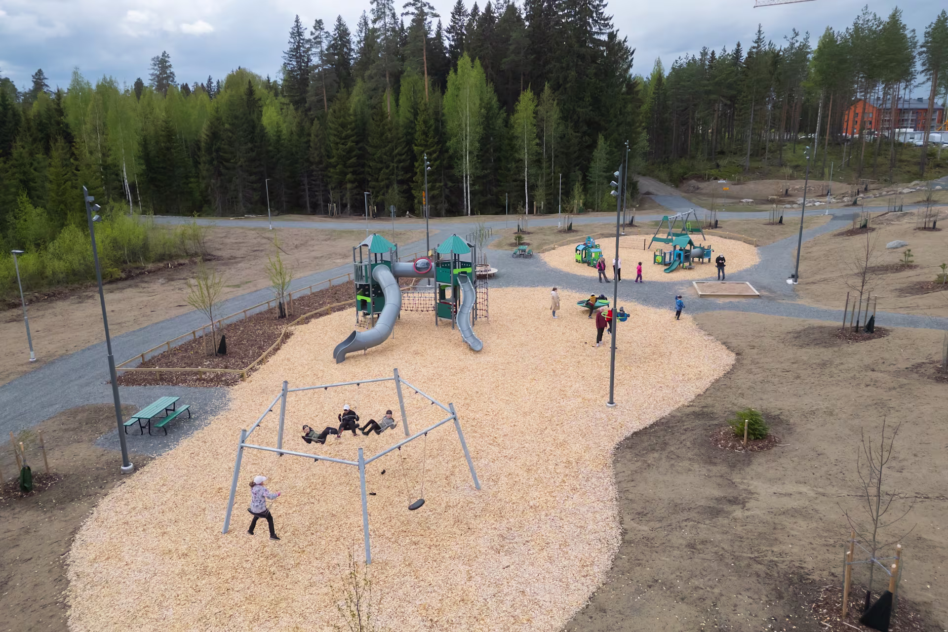 Monitoimitalo oli hyvin tarkka siitä, mitä he halusivat uudelta leikkipaikalta. Sen oli tarjottava jotakin jokaiselle ikäryhmälle, sen oli oltava osallistava ja sen piti haastaa lapset kognitiivisesti, luovasti ja fyysisesti. Yhteistyössä KOMPANin kanssa kaikki heidän tarpeensa täytettiin, ja taaperoille, teini-ikäisille ja nuorille rakennettiin leikkipaikka, joka tarjoaa jännittävän kokemuksen kaikille.