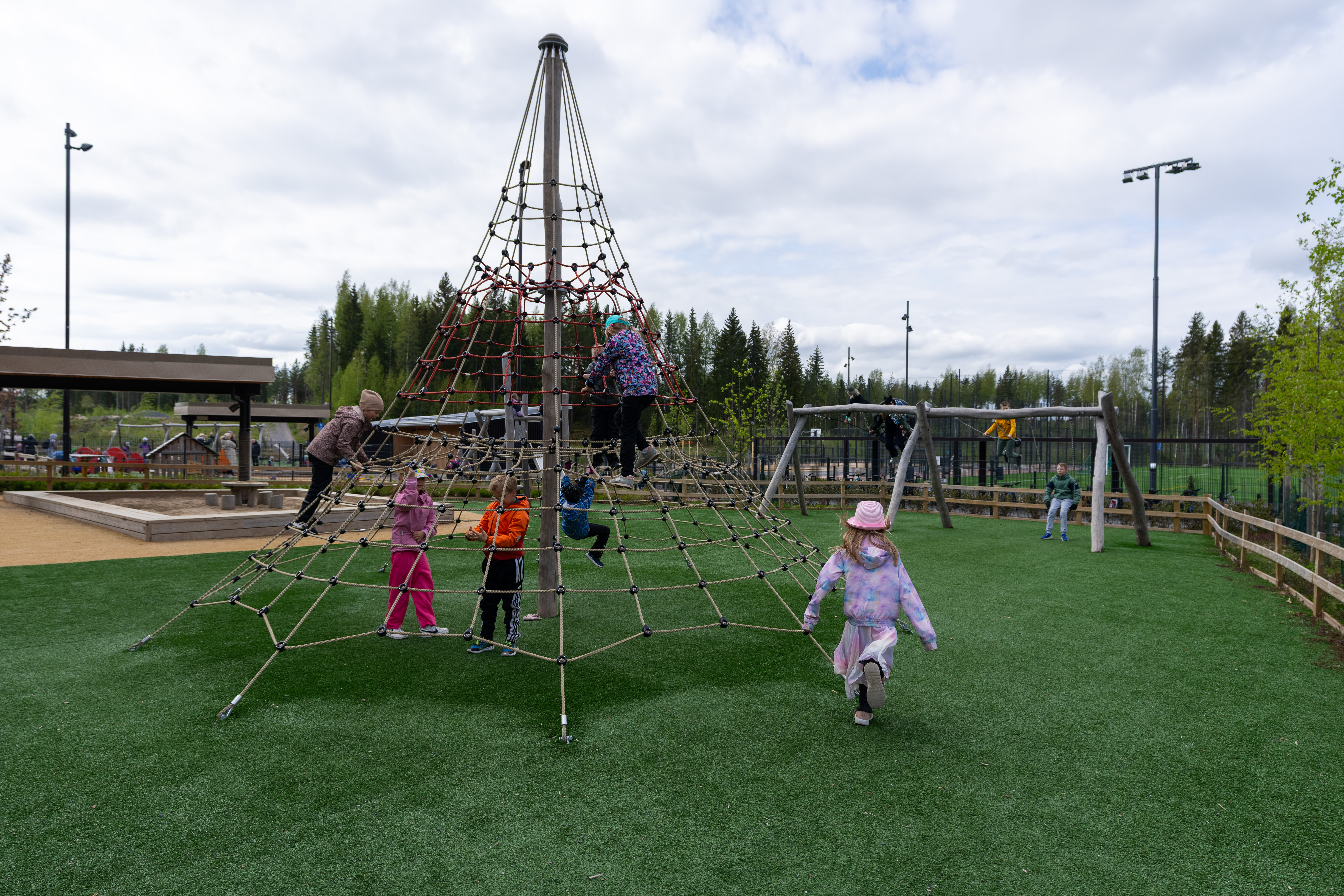 Leikkipaikka on koostettu useista elementeistä, jotta jokaiselle löytyy jotakin. Esimerkiksi Supernova on loistava tapa haastaa tasapainoa pyörivällä vinorenkaalla joko seisoen tai istuen. Useat lapset voivat leikkiä samaan aikaan, joten se on täydellinen väline ryhmäleikkeihin ja ystävystymiseen.