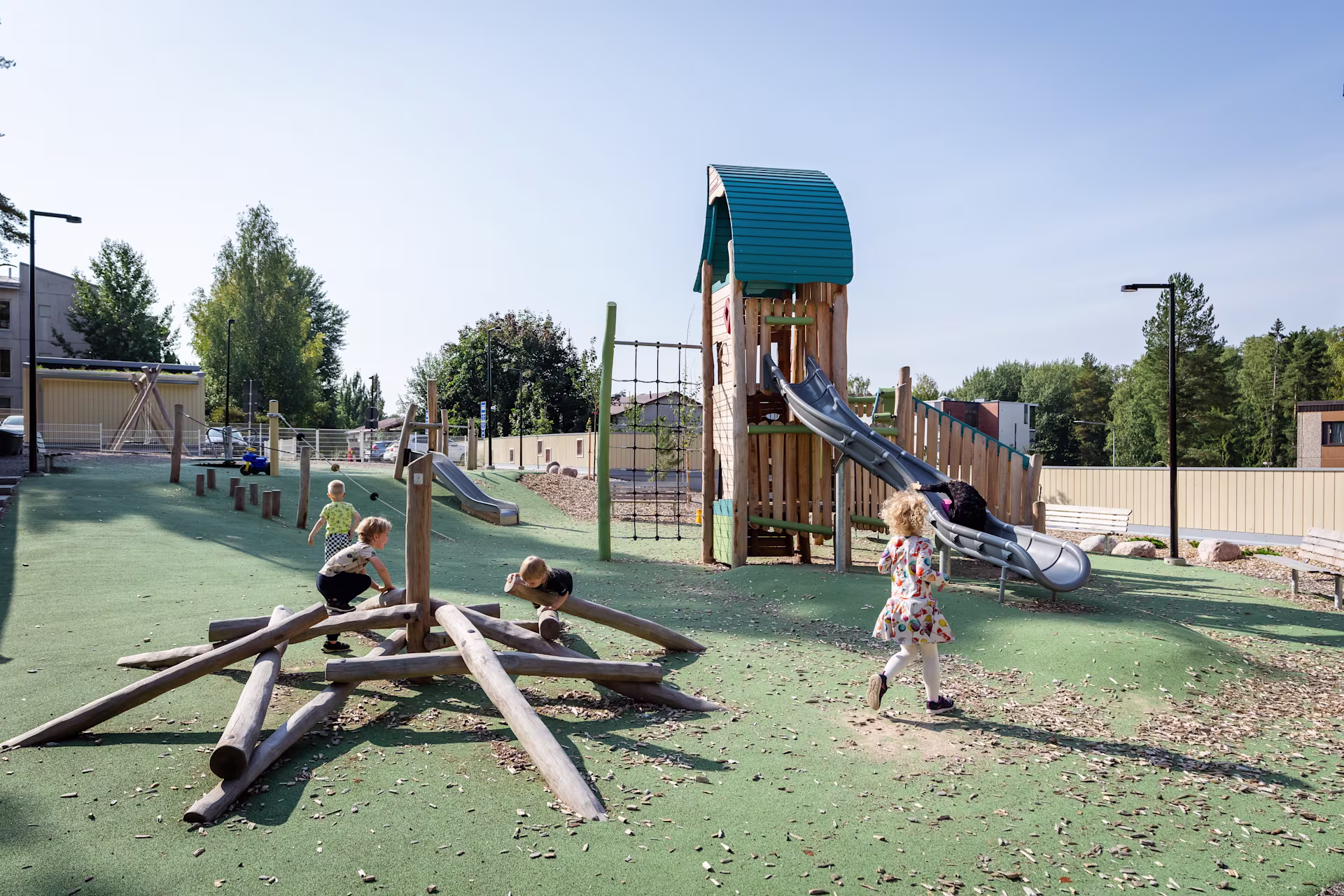 The Village Adventure robinia playground lets you discover the enchantment of natural play. The charming play area offers endless adventures for curious young minds. From the thrilling heights of the majestic tower to the dynamic balance challenges and the climbing trail, every element is designed to inspire and engage. Watch as children soar on swings, spin into giggles or find harmony on the seesaw. This wooden wonderland not only blends beautifully with its surroundings but also fosters social interaction, physical development and imaginative play.