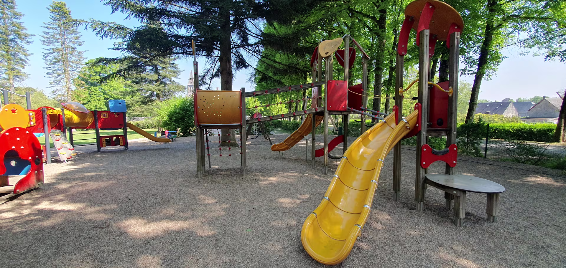 Les éléments de jeu sont tout aussi uniques que la conception de l'aire de jeux. La composition d'éléments sculpturaux représente des activités ludiques stimulantes et de nombreuses possibilités d'escalade. L'agilité et la coordination transversale sont requises lorsque les enfants veulent escalader le mur d'escalade incurvé, et ils tremblent sur les cordes oscillantes, où le sens de l'équilibre est mis à l'épreuve. Un autre point fort de l'escalade est le tube à bascule. En raison de sa forme particulière, il faut des compétences motrices pour y grimper. Ceux qui ont besoin d'une pause dans leurs jeux trouveront divers points de rencontre, comme le coquillage de jeu.