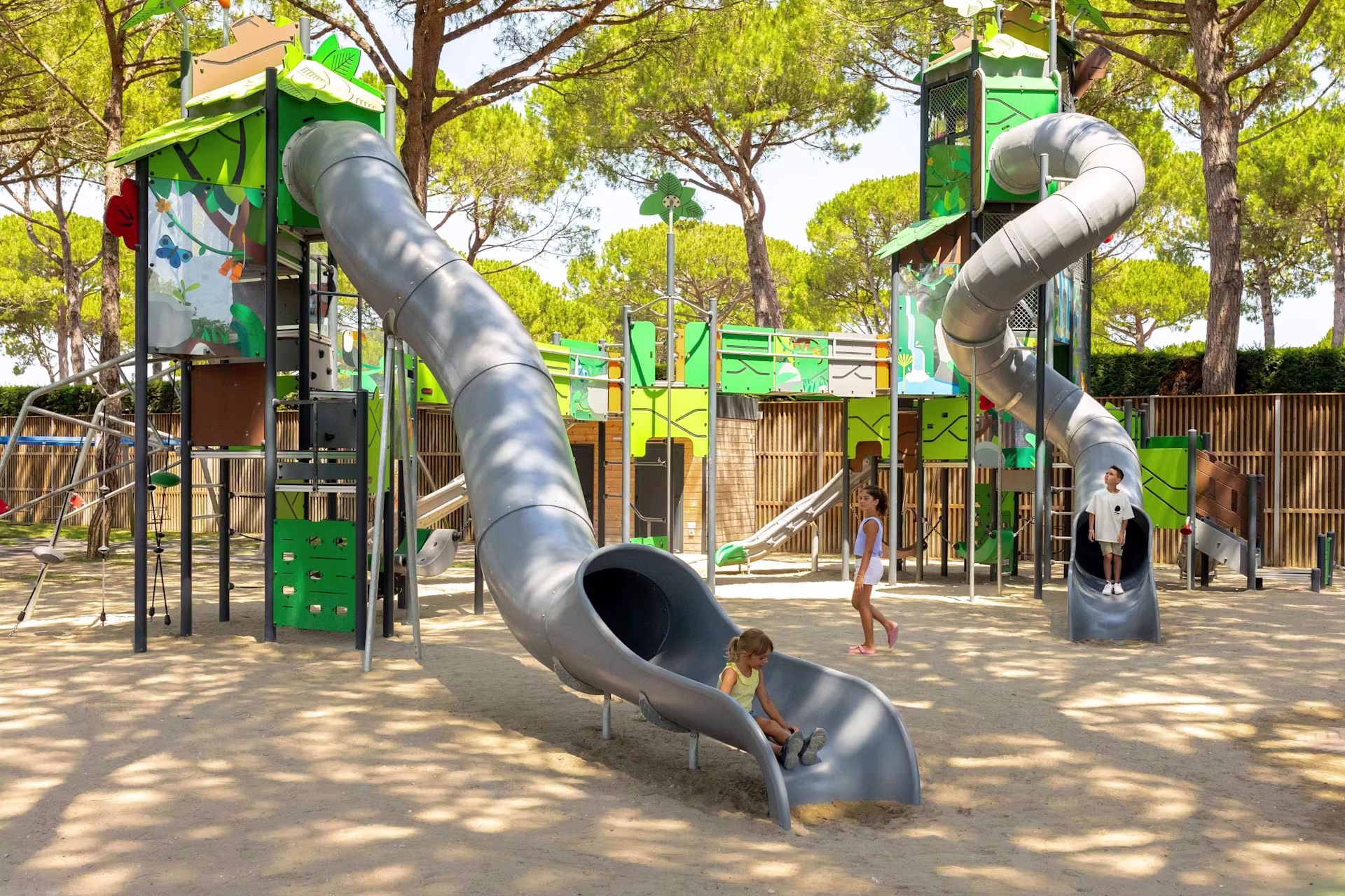 Il parco giochi Robinia riporta il gioco alla natura con il suo aspetto. Offre molte opzioni per sfidare le capacità motorie, la forza e la creatività. I più piccoli possono vivere un'avventura nella barca di legno, esplorare gli animali con il binocolo o sfidare se stessi scalando la torre. Tutto questo mentre i genitori possono sedersi e rilassarsi e tenerli d'occhio. Lo Sky Walk offre infinite opportunità di gioco che riempiranno di avventura e ricerca anche i bambini più attivi. La Sky Walk invoglia i bambini e anche i genitori a sfidare se stessi, a cercare di raggiungere la cima, utilizzando le diverse entrate. La struttura favorisce lo sviluppo sociale ed emotivo dei bambini, che imparano a fare i turni e ad aiutarsi l'un l'altro nel percorso verso la cima. Una volta arrivati in cima, vengono ricompensati con un'emozionante corsa di ritorno a terra su uno dei due scivoli.