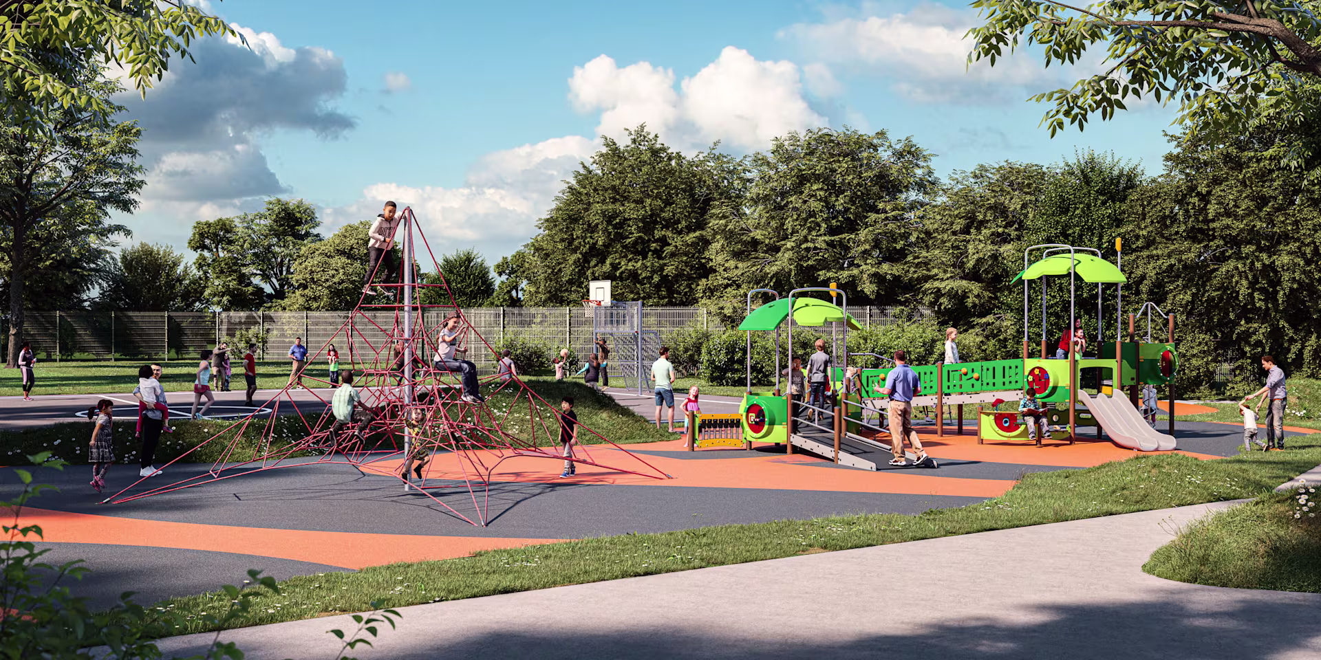 DEVELOP: 신체 놀이는 아이들의 활동성을 높여 신체 건강을 증진합니다. 활동하는 동안 균형 감각, 공간 인식, 운동 능력과 같은 중요한 신체 기술을 키울 수 있습니다. 클리프 라이더 활강은 용기를 주고 아이의 자존감을 키워줍니다. 스윙과 회전에서 오는 아찔한 자극은 아이의 신경계가 성숙하는 데 도움이 됩니다.