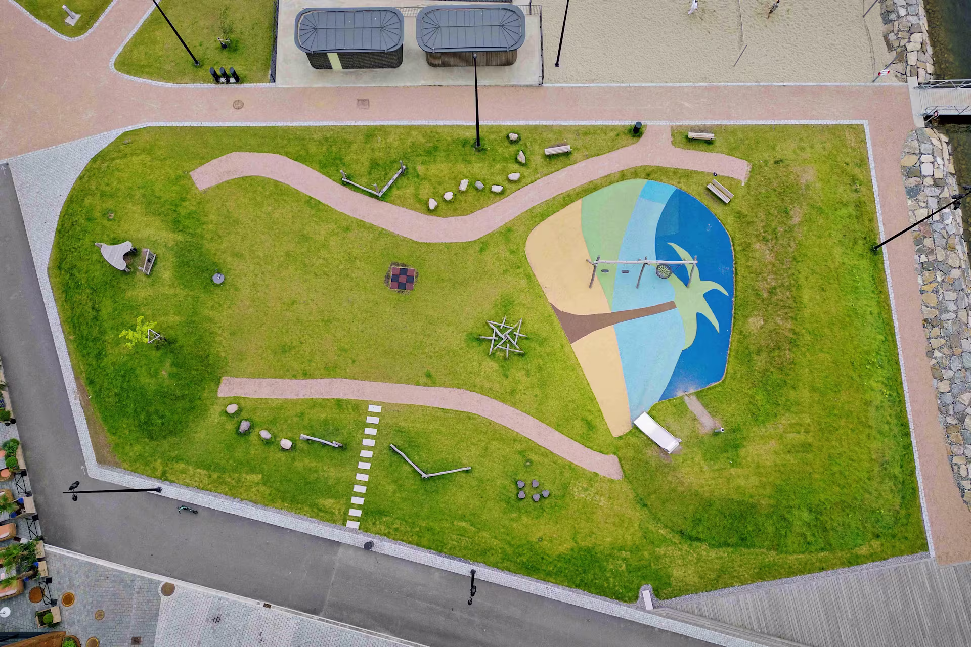 I tillegg til å være et underholdende lekeunivers oppfyller lekeplassens universelle utforming også kravene til inkludering. Det betyr at barn med funksjonsnedsettelser kan bevege seg rundt på lekeplassen uten problemer, takket være underlaget og et utvalg av lekeaktiviteter som karuseller, husker og sandkasser som støtter ulike kroppsholdninger og behov. I tillegg gjør gangveien i utkikkstårnet og den store avstanden mellom lekesonene det enkelt for både rullestolbrukere og foreldre med barnevogner å komme til. Se flere eksempler på .
