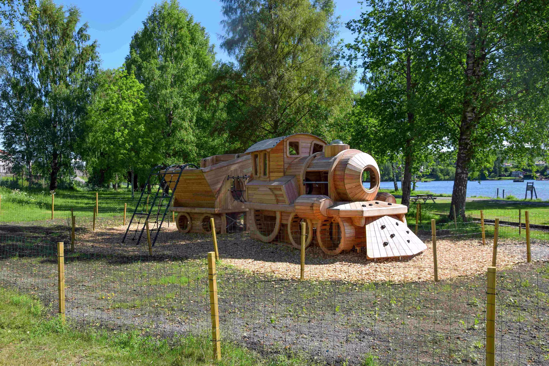 På lekeplassen kan barna få utløp for energien sin på et variert utvalg av spennende lekeapparater. Lekeplassens inndeling i mindre «lekesoner» gir mange ulike lekemuligheter. Fra aktiviteter som trampoliner, husker, sklier og snurrebasser til sandlek i lekehuset eller rollelek i det imponerende 5,8 meter høye utsiktstårnet, har lekeplassen noe å by på for barn i alle aldre.