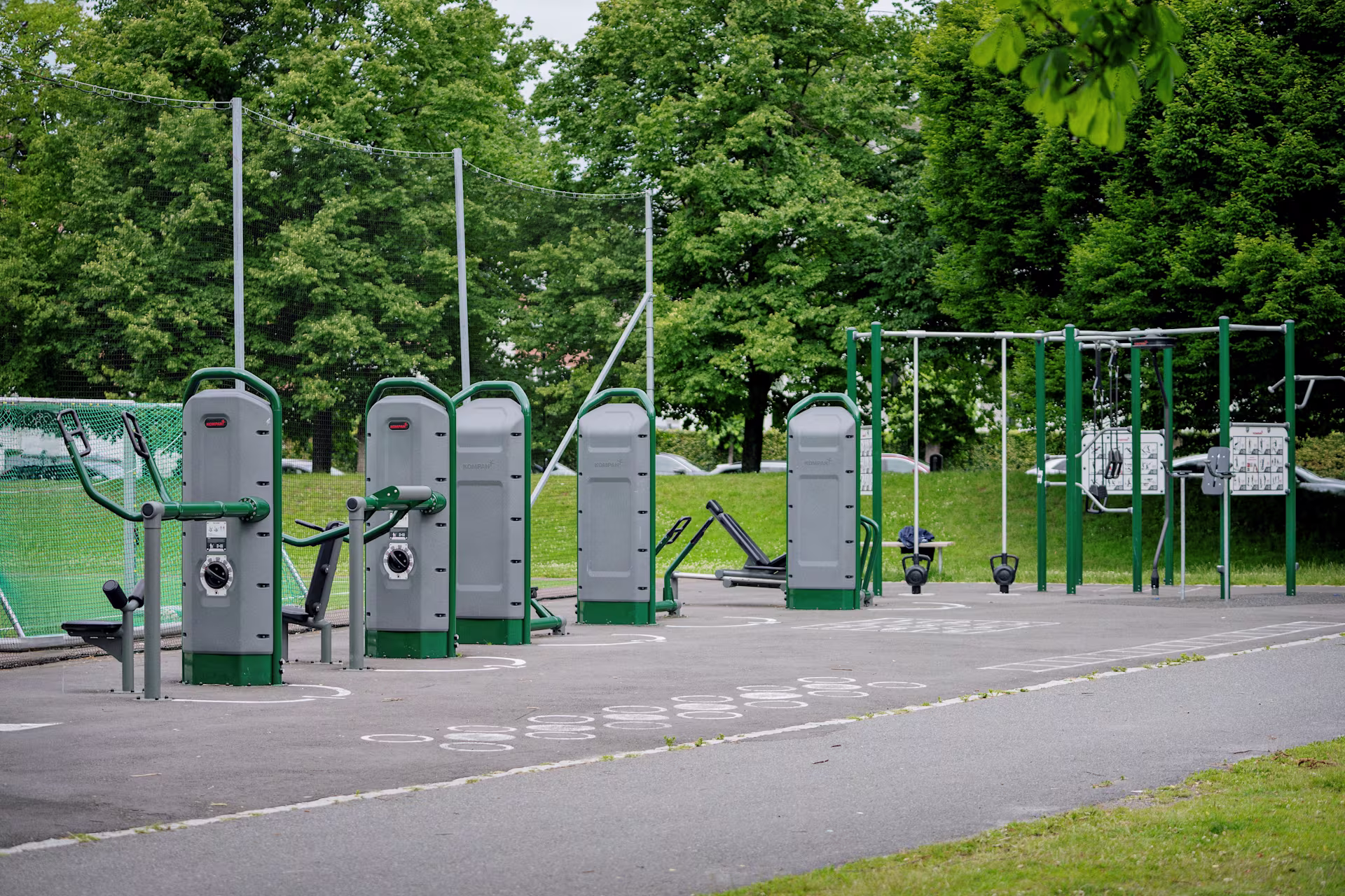 GroundPlay har en blanding av KOMPANs holdbare utendørs treningsutstyr, inkludert justerbare styrketreningsapparater, kardio-sykler og elliptiske crosstrainere som enkelt kan kobles til (App Store eller Google), cross-trainingssystemer og street workout-stasjoner som er ideelle for å teste atletenes kondisjon.