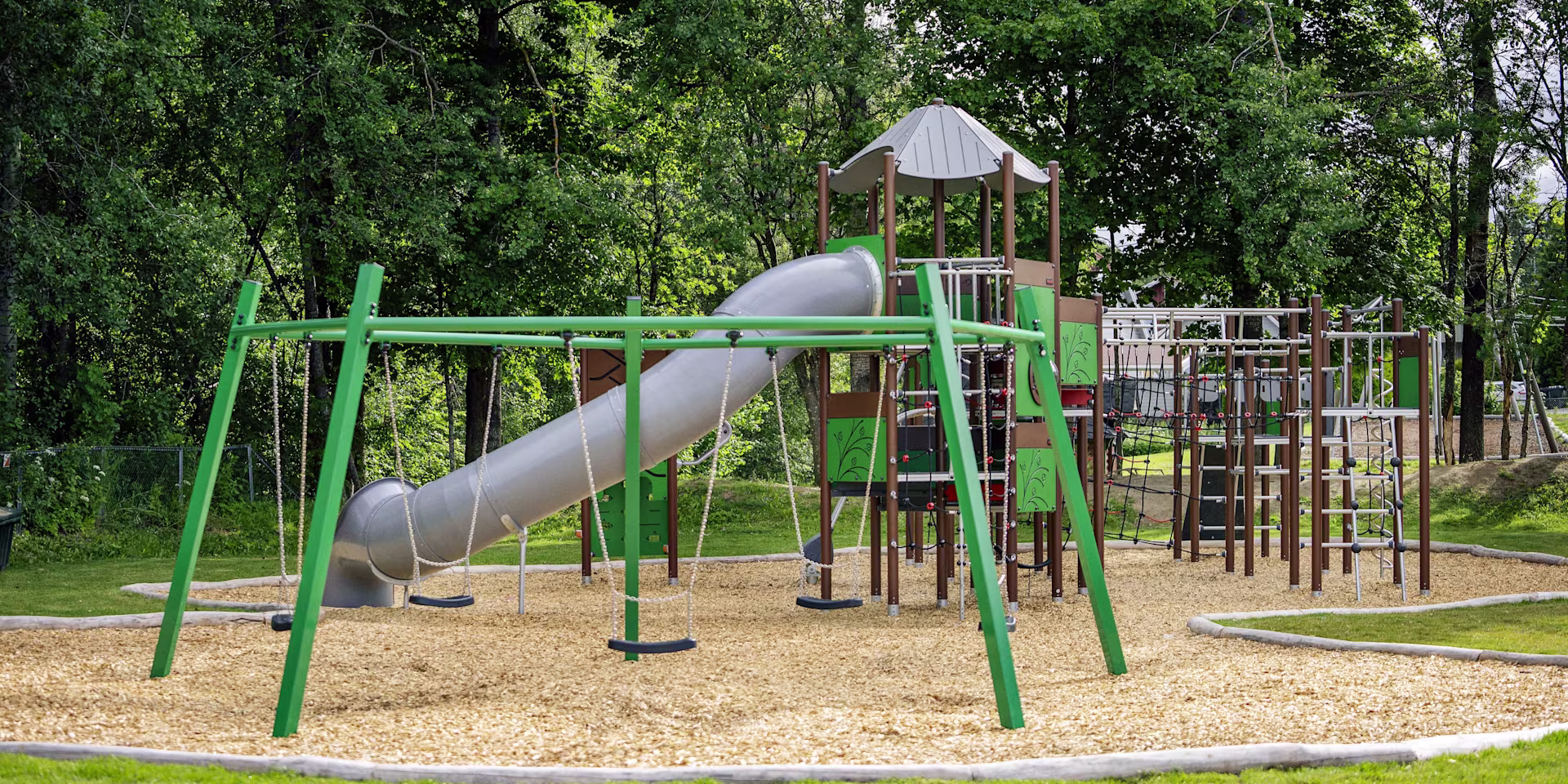 I midten av parken står det store klatrenettet Monsteret, med sin bølgende form som følger vannrennens bevegelser. Klatrenettet er fylt med lekeverdi med aktiviteter som klatring, henging, slenging og skliing. Den store plassen og de mange aktivitetene gir timevis med moro for både store og små. På siden er det en femkantet huske som byr på lek på alle fronter.