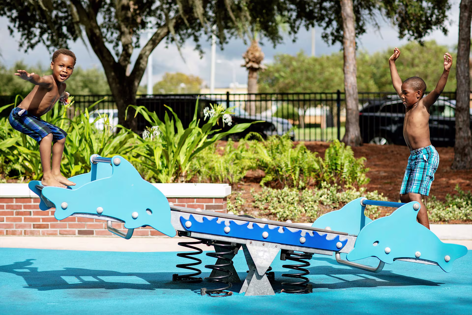Under årens lopp har greven av Egeskov investerat i lekutrustning för att göra slottets område inbjudande för barnfamiljer. Greven skapade det populära Play Forest – ett stort, grönt parkområde med utrustning från KOMPAN. Parken rymmer roliga utmaningar för barn i alla åldrar, och även föräldrarna kan bli andfådda när de klättrar på Danmarks högsta COROCORD Spacenet.
