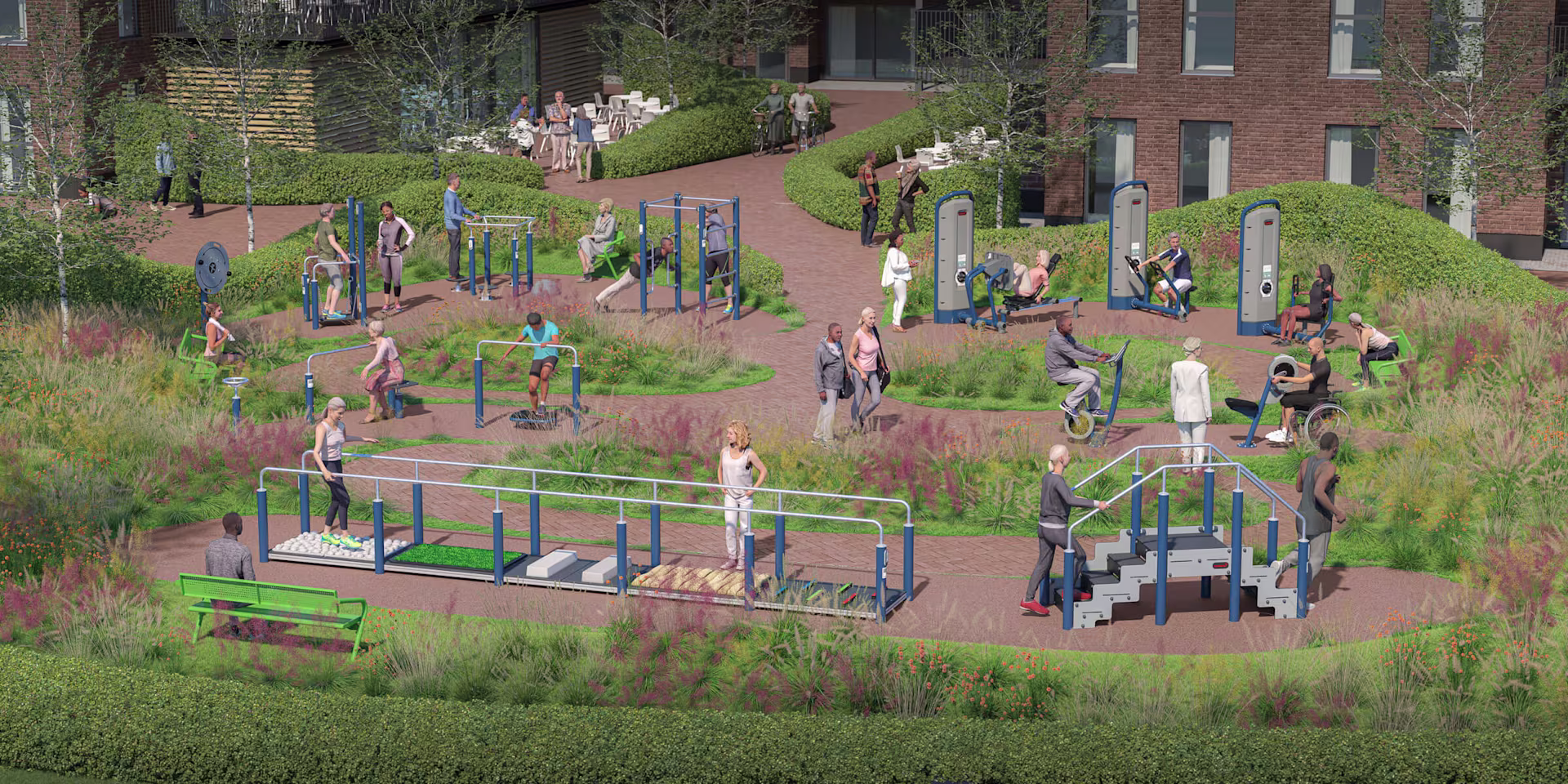 Beslutet blev att bygga ett riktigt inkluderande utegym och de fastnade tidigt för KOMPANs styrkemaskiner med justerbara vikter. Detta då de är så enkla att träna rätt med, de kan användas av människor med olika träningsvana och deras utseende lockar människor att testa. Dessutom är de designade för att enkelt kunna flytta sig från en rullstol direkt till sätena.