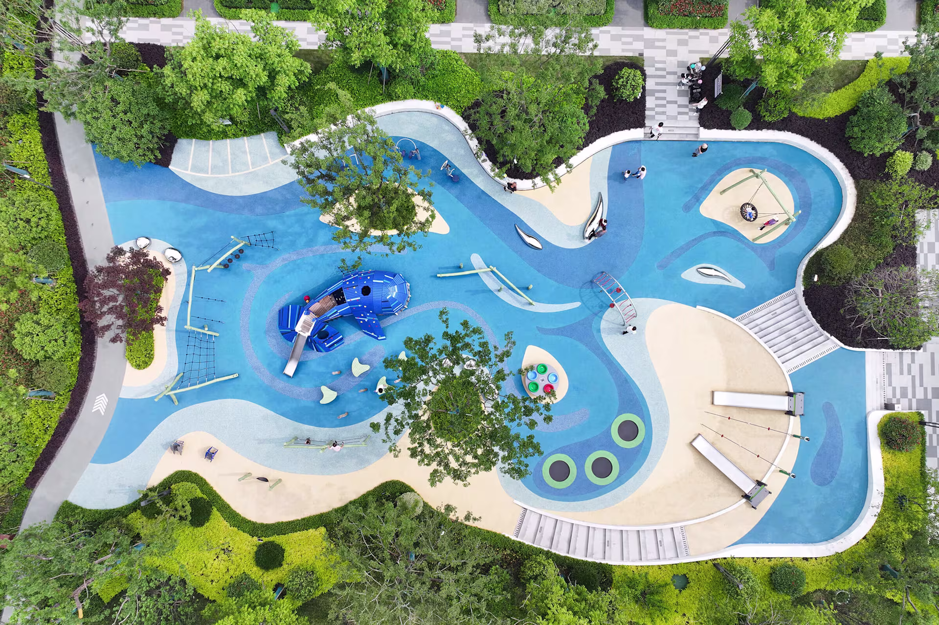 现在,Frederiksberg地区的家庭可以在 Fuglebakke 社区享受一个全新的游乐场。这里,孩子们可以在各种有趣的游乐设施上释放精力。游乐场分为多个较小的“游乐区”,鼓励孩子们探索不同的娱乐活动。从蹦床、秋千、滑梯和旋转设备等活动,到在游乐屋内的沙土游戏,甚至在高达5.8米的观景塔中进行角色扮演,这个游乐场为各个年龄段的孩子们提供了丰富的选择。 除了作为一个充满娱乐的游乐天地,这个游乐场的普适设计还满足了包容性要求。这意味着,残障儿童也能轻松地在游乐场内活动,得益于地面材料的选择和游乐设施的设计,例如旋转设备、秋千和沙坑等,它们支持不同的身体姿势和需求。此外,观景塔的通道设计以及各游乐区之间的宽阔间距,使得轮椅使用者以及推车和婴儿车的父母也能轻松进入游乐场。。